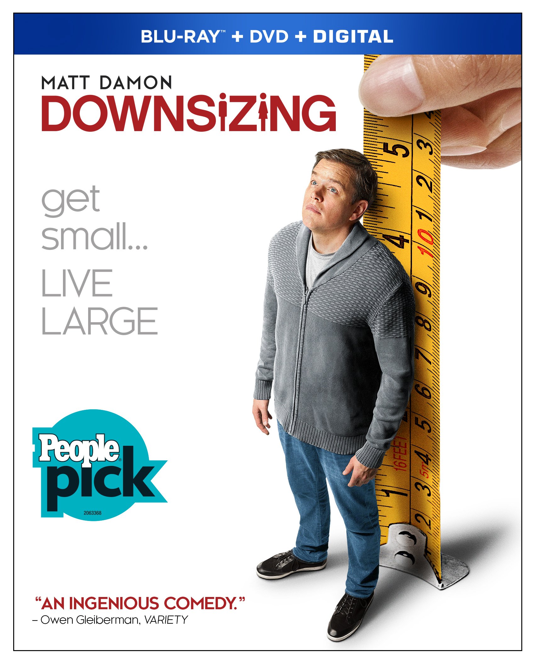 Blu-ray + DVD + Digital. Thanks to a scientific breakthrough, consumers can mitigate their impact on the planet-and ensure their savings last a lifetime-courtesy of an irreversible process that shrinks humans to four inches tall. Office drone Paul Safranek (Matt Damon) and his wife Audrey (Kristen Wiig) agree to buy in… but Paul’s fateful assimilation into the miniaturized community shows his problems have only grown larger. Alexander Payne’s sly sci-fi satire also stars Christoph Waltz, Jason Sudeikis, Udo Kier, and Hong Chau. 135 min. Widescreen; Soundtrack: English. Two-disc set.