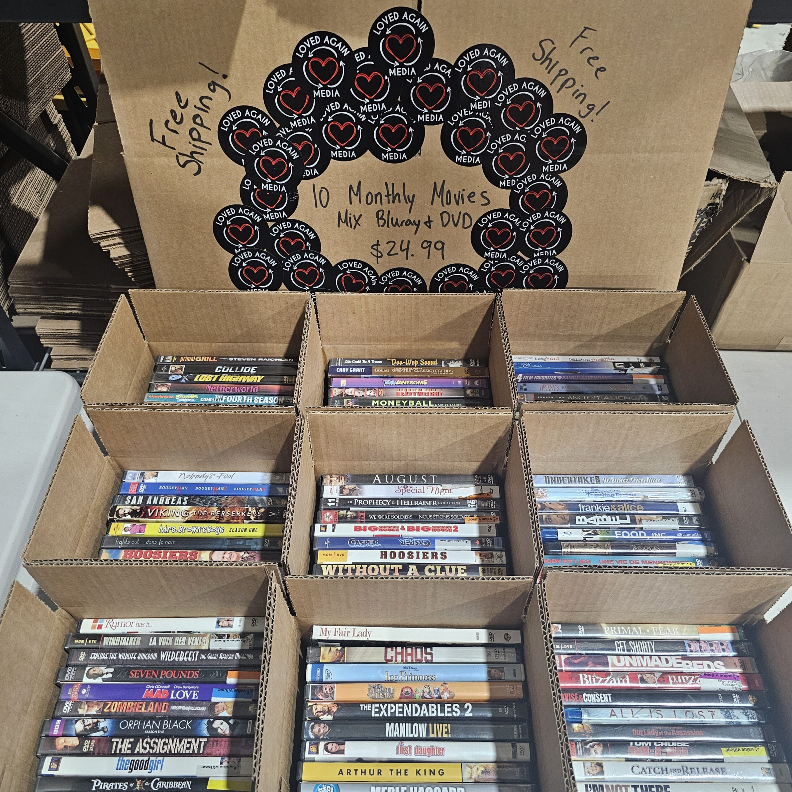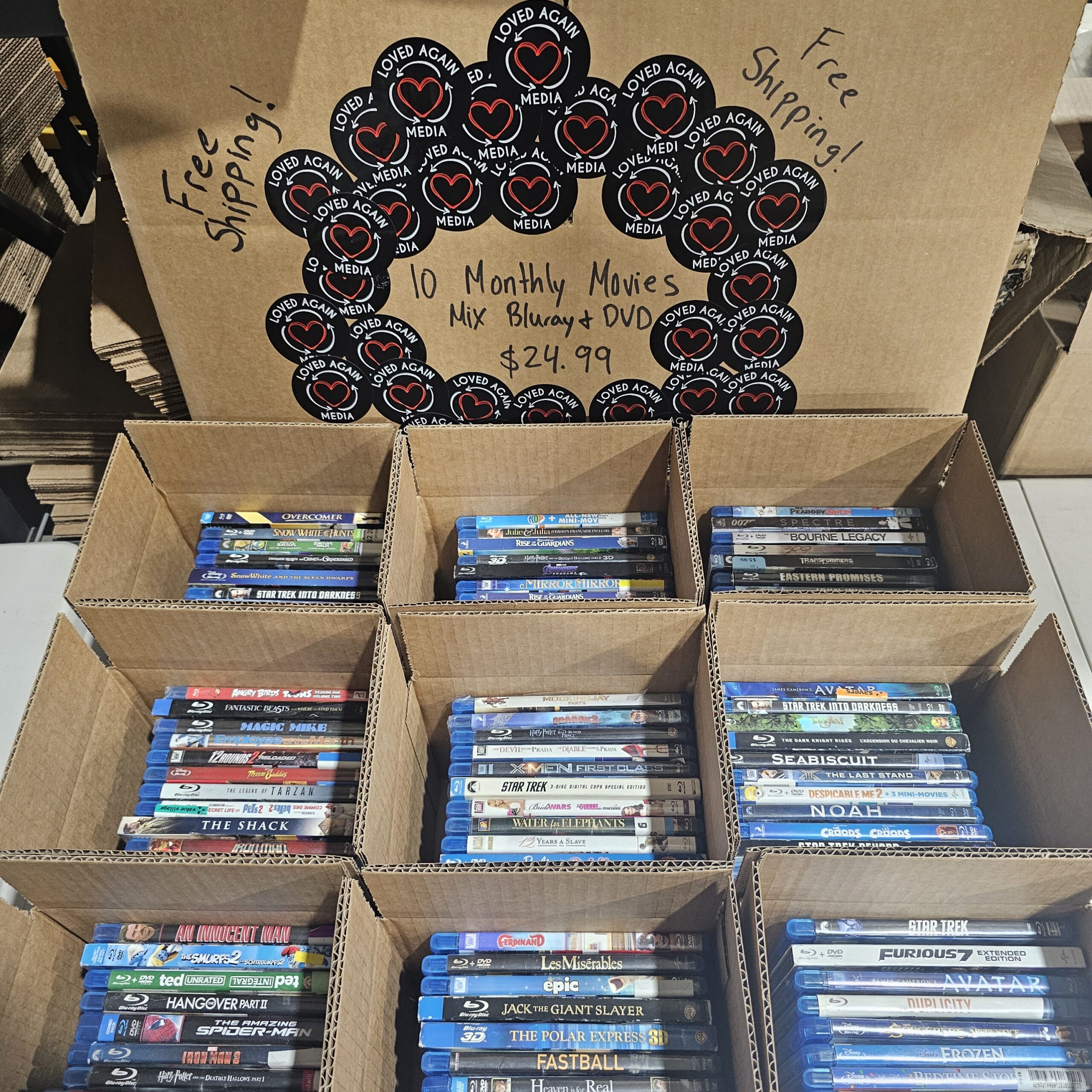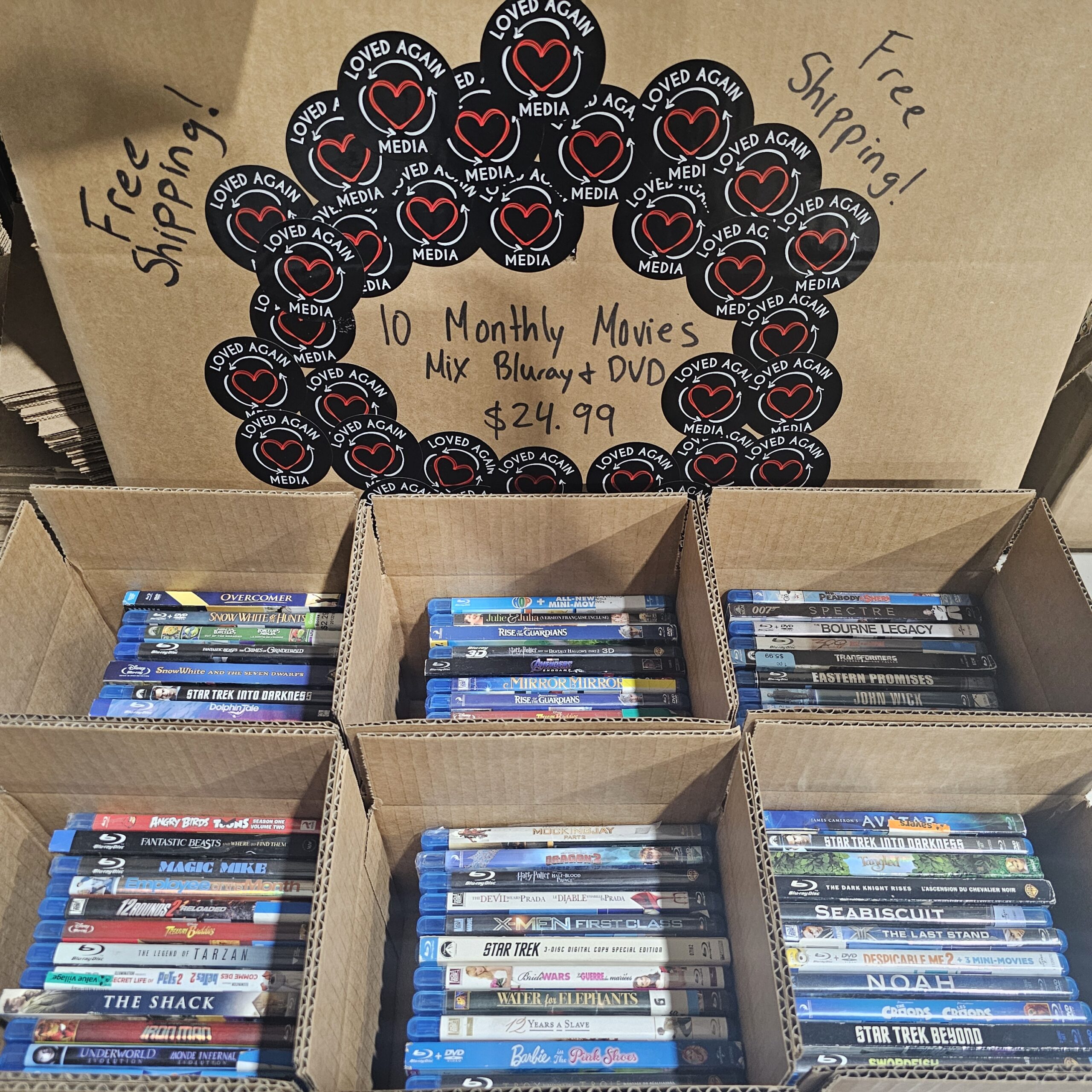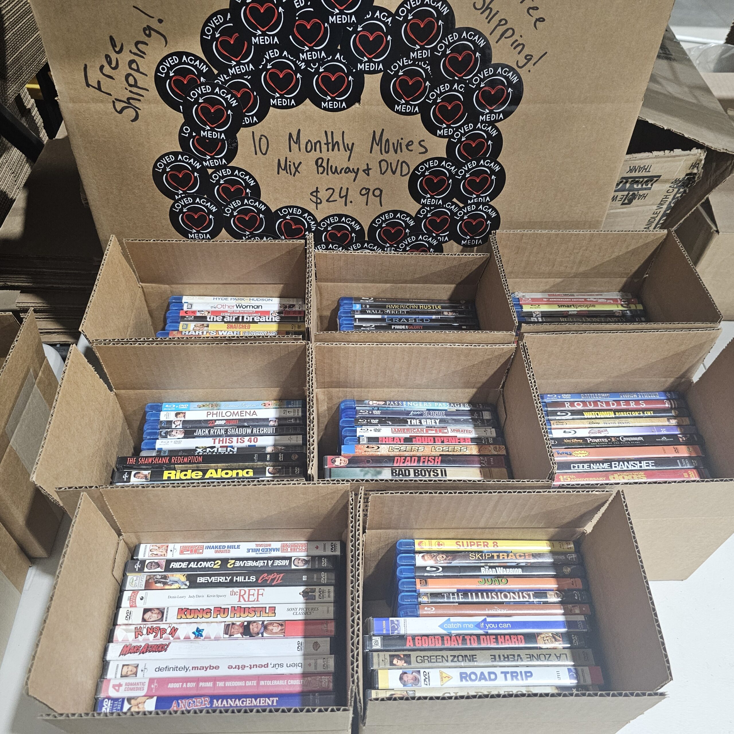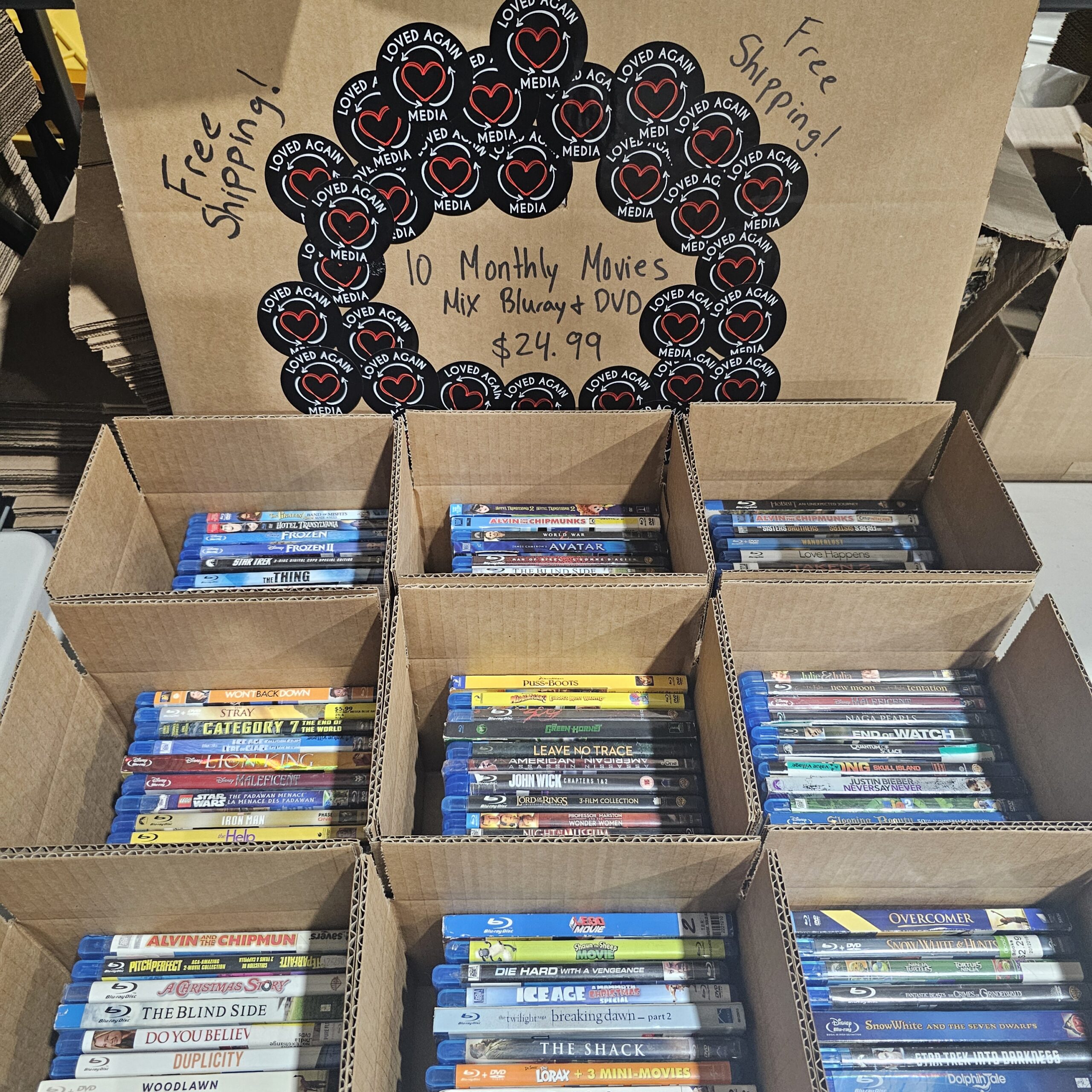 10–40 DVDs & Blu-rays per box, gently used and yours to keep