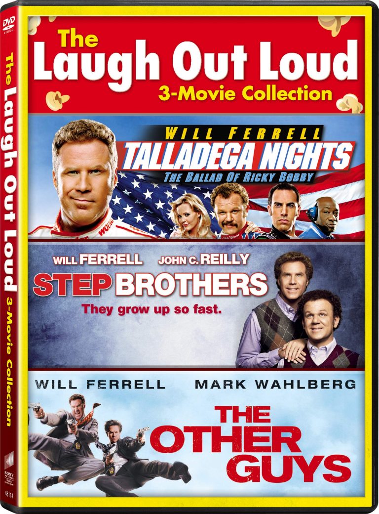 The Laugh Out Loud 3-movie Collection: Talladega Nights / Step Brothers / The Other Guys (DVD + Digi) Talladega Nights: The Ballad of Ricky Bobby (2006) #1 NASCAR driver Ricky Bobby stays atop the heap thanks to a pact with his best friend and teammate, Cal Naughton, Jr. But when a French Formula One driver, makes his way up the ladder, Ricky Bobby’s talent and devotion are put to the test. – Step Brothers (2008) Two aimless middle-aged losers still living at home are forced against their will to become room-mates when their parents marry. – The Other Guys (2010) Two mismatched New York City detectives seize an opportunity to step up like the city’s top cops whom they idolize – only things don’t quite go as planned.