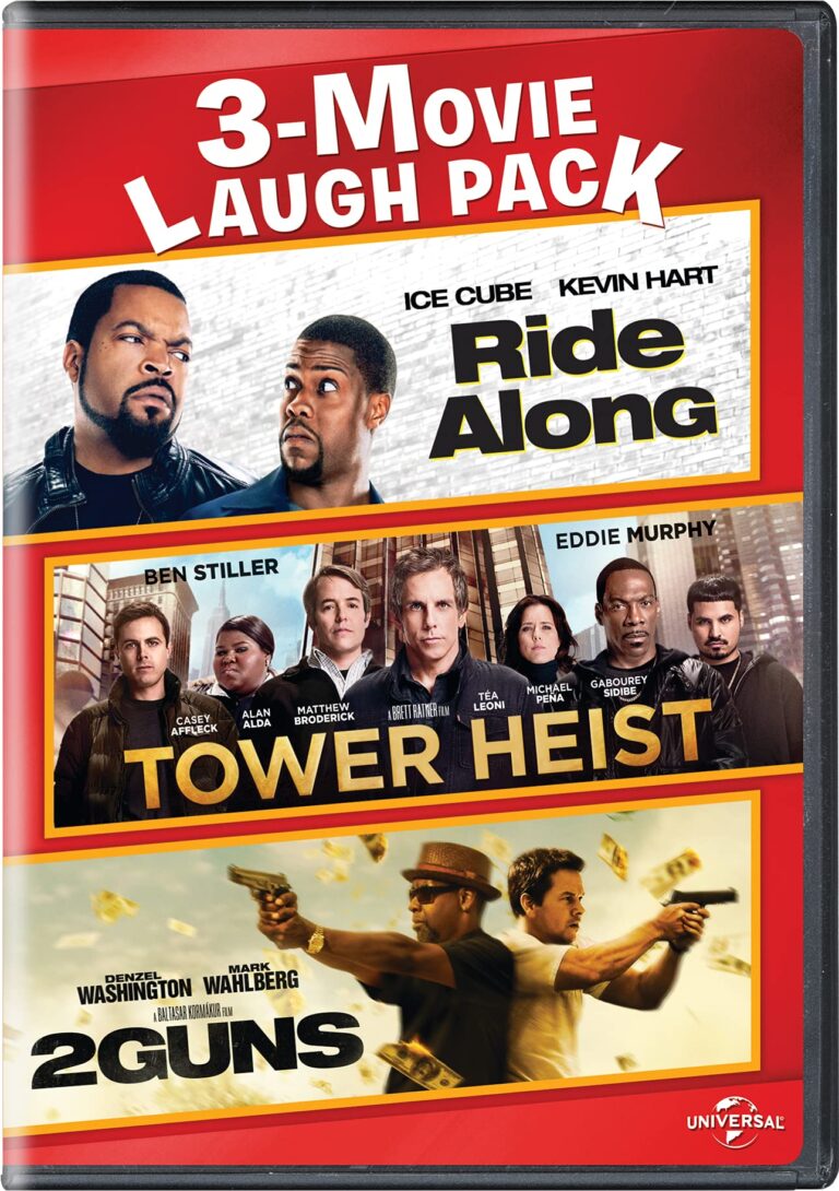 The 3-Movie Laugh Pack includes Ride Along, Tower Heist and 2 Guns. Starring Ice Cube, Kevin Hart, Ben Stiller, Eddie Murphy, Denzel Washington, Mark Wahlberg and more!